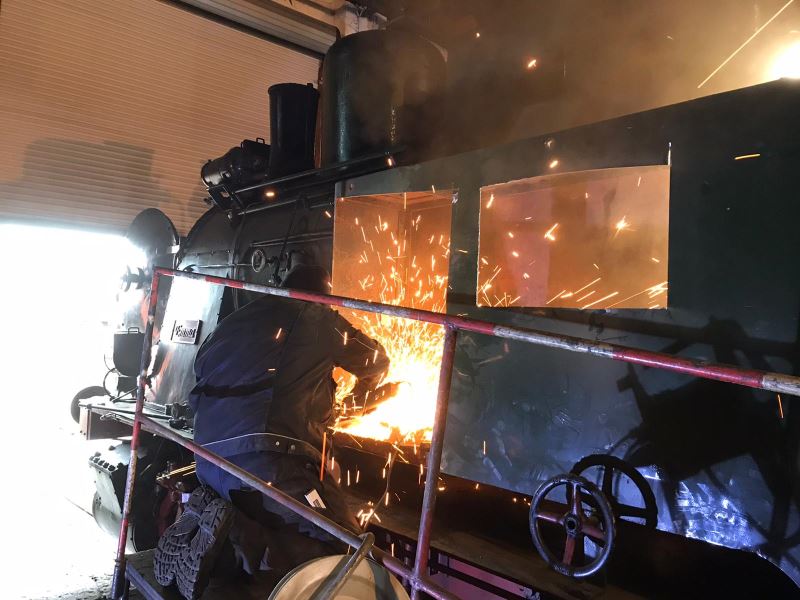 Nur Emma weiß, wie viel Kohle in ihren Kohlenkasten gefüllt und von hier aus durch die unzähligen Heizer, denen sie in ihrem Leben begegnet ist, wieder herausgeschaufelt wurde. So nagte langsam der Zahn der Zeit an ihrem Kohlenkasten und der Rost fraß sich von innen durch’s Blech. Wir nutzen nun die Winterpause für ein paar kosmetische Eingriffe und spendieren der kleinen Lok ein paar neue Bleche, damit sie wieder hübsch aussieht und die Kohle da bleibt, wo sie hingehört.