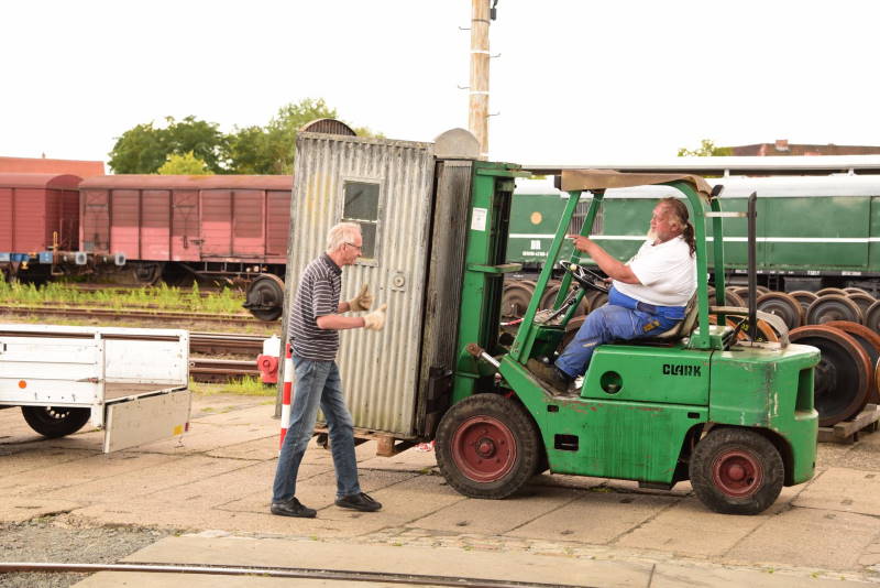In den vergangenen Tagen hatten einige Mitglieder das schöne Wetter genutzt und eine sogenannte Fernsprechbude geborgen, die ehemals in Brunau-Packebusch an der Strecke Salzwedel – Stendal stand. Zunächst die Bilder von der schweißtreibenden Aktion. Die Bude wurde zunächst so zerlegt, dass man sie sicher tragen und auf dem bereitgestellten Pkw-Anhänger verladen konnte. Nach ca. einstündiger Fahrt erreichten die Kollegen den Historischen Lokschuppen in Wittenberge und stellten die Bude erst einmal in der Werkstatt unter, wo sie etwas gereinigt wird. Mal sehen, vielleicht kann auch die Inneneinrichtung rekonstruiert werden.