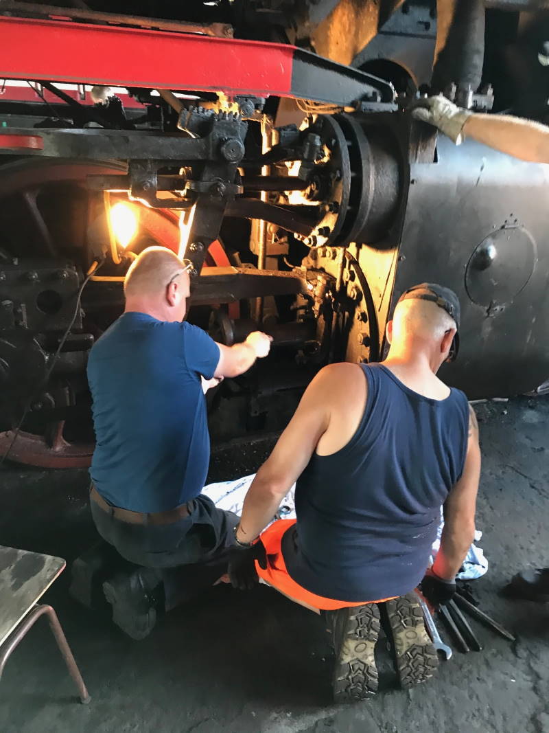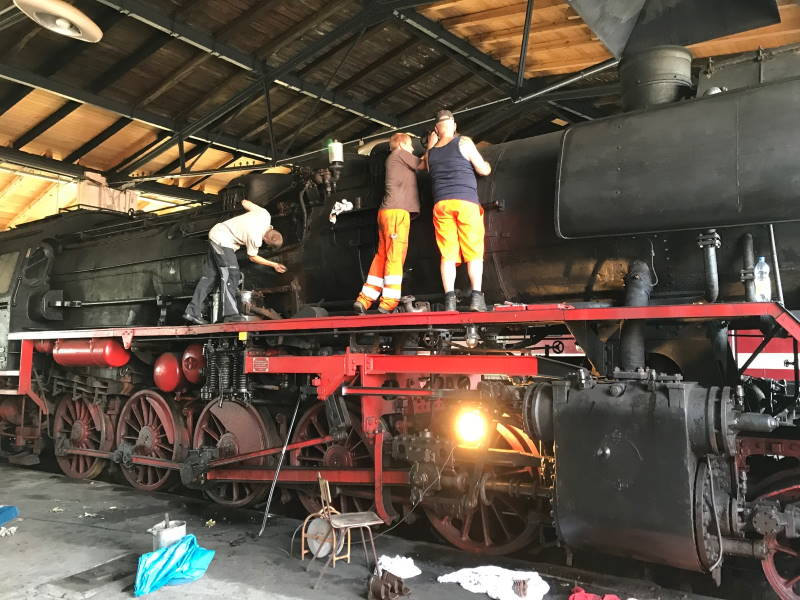 Am vergangenen Wochenende haben wir des Weiteren bei hochsommerlichen Temperaturen mit einer starken und eingespielten Mannschaft einen größeren Arbeitseinsatz an unseren betriebsfähigen Dampflokomotiven „Emma“ und 50 3570 durchgeführt. Notwendige Unterhaltungsarbeiten und kleinere Reparaturen waren nach unserer letzten Veranstaltung im Juli notwendig geworden und wurden behoben.