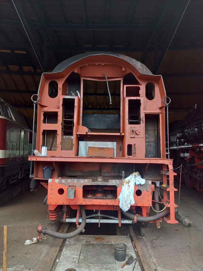 Am vergangenen Samstag konzentrierten sich einige Aktive auf die Fertigstellung des Tenders unserer Dampflok 50 3570. Hier waren insbesondere die sogenannten Kuppeleisen zu begutachten, welche den Tender mit der eigentlichen Lokomotive verbinden. Dabei handelt es sich um insgesamt drei ungefähr beindicke Metallstangen, die am Tender und der Lokomotive befestigt sind. Diese mussten ausgebaut, untersucht und neu lackiert werden. Das war ein hartes Stück Arbeit, weil die Bolzen, welche die Kuppeleisen im Tender halten, schon seit Jahren nicht mehr bewegt und entsprechend festgerostet waren. Um sie zu lösen, brauchte es viel Wärme aus dem Schweißbrenner und mehr oder weniger dezente Schläge mit dem Vorschlaghammer. Schließlich konnten die jeweils rund 100 Kilo schweren Kuppeleisen ausgebaut werden.
