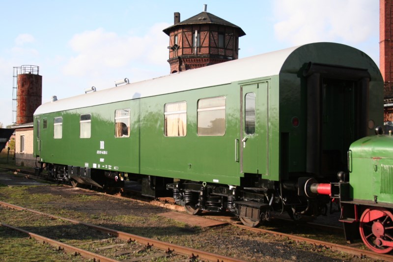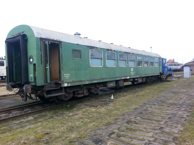 Da die Wagen des K-Zuges in Salzwedel leider meist der Witterung ausgesetzt sind, ist nach und nach eine Sanierung notwendig. Begonnen haben wir mit dem Maschinenwagen, der ursprünglich am 20.12.1976 in Dienst gestellt wurde. Äußerlich unterscheidet er sich kaum von den damals in der DDR üblichen Reisezugwagen der Gattung Bghw. Der Wagenkasten stammt auch vom gleichen Hersteller, dem Reichsbahnausbesserungswerk Halberstadt.