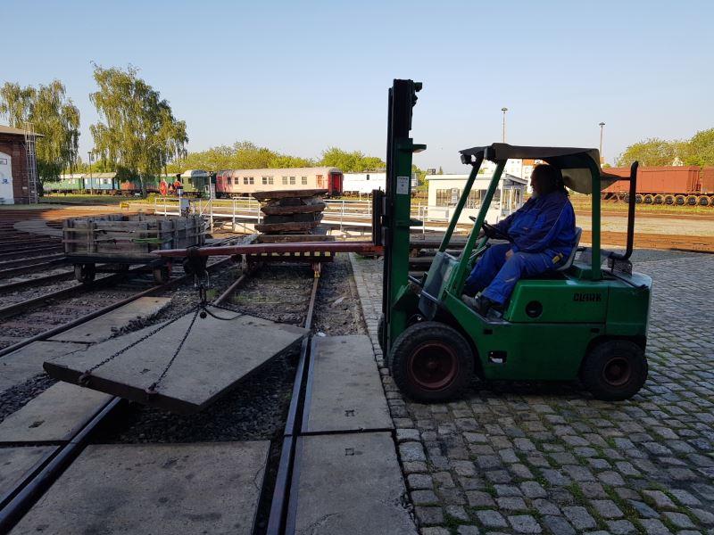 Jüngster Zugang der Fahrzeugsammlung in Wittenberge ist die Diesellok 0604, die schon lange Jahre die Sammlung der Dampflokfreunde in Salzwedel bereicherte. Nach einem vorübergehenden Einsatz in Ludwigslust erreichte die Lok am Samstag, den 4.5.2013 ihren neuen Standort in Wittenberge per Tieflader. Die Lok wurde im August 1935 an das Oberkommando des Heeres für das Lager Munster ausgeliefert und nach dem Krieg auf dem Netz der Osthannoverschen Eisenbahn (OHE) eingesetzt. Die Lok wurde bei der Firma Deutz mit der Fabriknummer 12694 gebaut und verfügt über einen luftgekühlten Dieselmotor. Dieser entwickelt eine Leistung von 130 PS aus acht Zylindern. Die Höchstgeschwindigkeit der Lok beträgt 30 km/h.