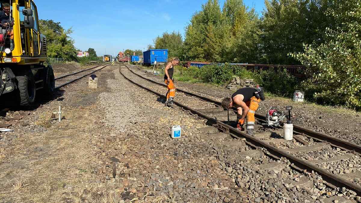 Kontinuierlich arbeiten wir an der Erhaltung unserer Gleisanlagen. Denn was nützt das schönste Museum, wenn man die Fahrzeuge darin nicht sicher bewegen kann. Diesmal wurden Arbeiten auf der sogenannten Magdeburger Bahnhofseite durchgeführt. Dabei wurden von einer Gleisbaufirma viele Schwellen aus Holz gegen solche aus Beton getauscht. Außerdem wurden Reste von Weichen ausgebaut, die nicht mehr benötigt werden.
