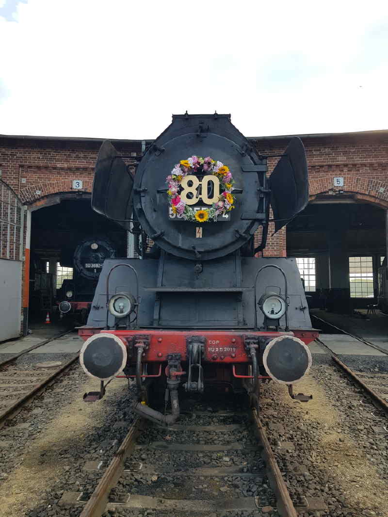 Bei der Dampflok "Pritzwalk" handelt es sich um eine Rangierlokomotive aus dem Hause Henschel, Kassel, die im Jahr 1912 unter der Fabriknummer 10802 gebaut wurde. Die Firma Henschel hatte seinerzeit einige Standardlokomotivtypen im Angebot, die sie nach den Einsatzorten der ersten Modelle des jeweiligen Typs benannte. Bei der "Pritzwalk" handelt es sich um eine Lok des Modells "Riebeck". Die Riebeckschen Montanwerke waren bis 1922 in der mitteldeutschen Braunkohleindustrie tätig und bestellten eben die ersten Schwestern der "Pritzwalk" als Rangierloks für ihre Werksanlagen. Die Lok "Pritzwalk" wurde an die Frankfurter Gasgesellschaft geliefert, die sie als Rangierlok in einem Werk zur Gewinnung von Stadtgas in Frankfurt einsetzte. Das Gas wurde seinerzeit aus Steinkohle gewonnen, die per Schiene angeliefert wurde. Nach der Entgasung blieb unter anderem Koks übrig, der per Schiene auch wieder abgefahren wurde. Für die Bereitstellung der entsprechenden Güterwagen wurde die "Pritzwalk" benötigt, die seinerzeit allerdings diesen Namen noch nicht trug. 1971 wurde die Lok abgestellt und an einen Autokran-Dienst in der Nähe von Frankfurt/M. verkauft, der sie als Denkmal aufstellen wollte. Der Plan wurde jedoch 1979 verworfen und die Lok wurde nach Wuppertal-Barmen verkauft, wo sie fortan als Blickfang vor einem Modellbahngeschäft stand. 1999 erwarb die Prignitzer Eisenbahn die Lok und ließ sie später aufarbeiten. Im Jahre 2004 erfolgten die ersten Probefahrten. Allerdings kam sie nachher nur in Ausnahmefällen zum Einsatz. Anlässlich des 25-jährigen Jubiläums des Vereins Dampflokfreunde Salzwedel e.V., des Trägervereins des Historischen Lokschuppens Wittenberge, wurde die Lok im Oktober 2019 nach Wittenberge transportiert und seit langer Zeit einmal wieder der Öffentlichkeit im Betrieb vorgeführt. |