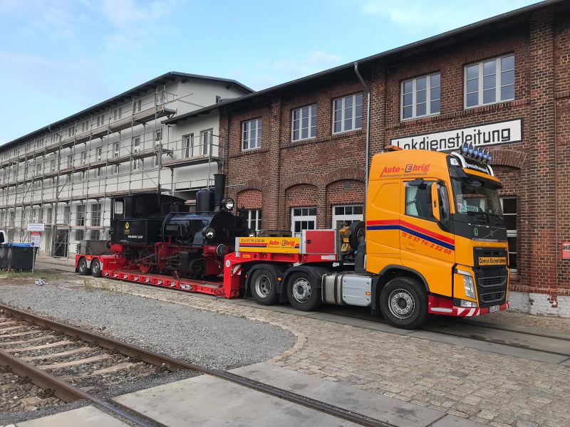 Heute gab es ein eher ungewöhnliches Bild in Wittenberge zu sehen. Denn wann rollt schon eine Dampflok mitten durch die Stadt? Das Rätsel ist schnell gelöst, denn heute wurde die Dampflok "Pritzwalk" per Tieflader beim Historischen Lokschuppen Wittenberge angeliefert. Die Lok kam huckepack aus Meyenburg, damit sie an der Jubiläumsveranstaltung des Museums am 12. und 13.10.2019 teilnehmen kann. Sie wird dann unter Dampf zu sehen sein, sich mit den anderen Lokomotiven des Museums bei den beliebten Führerstandsmitfahrten abwechseln und bekommt sicher auch einen Ehrenplatz in der Fahrzeugparade, die an den Veranstaltungstagen jeweils gegen 14:00 Uhr durchgeführt wird.