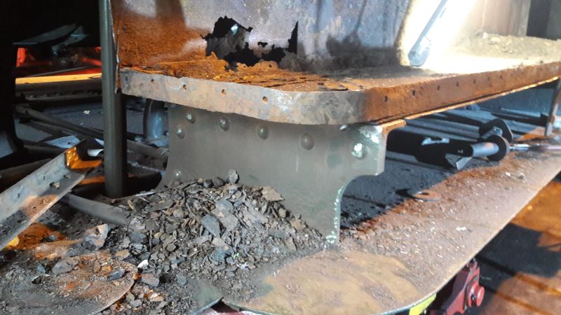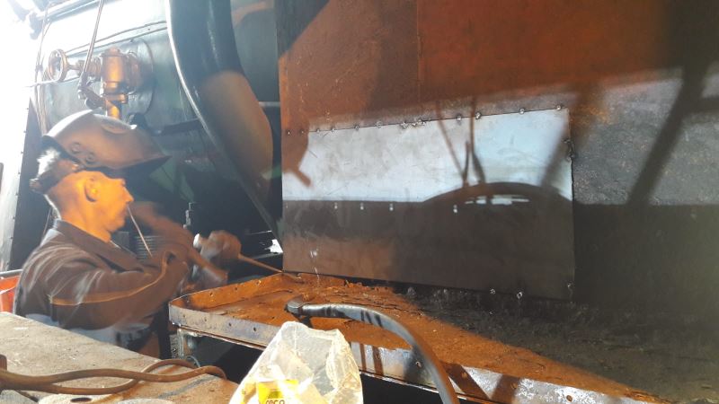 Bei der Demontage stellte sich heraus, dass nicht nur die Außenseite, sondern auch die Innenseite des Kohlenkastens vom Lochfraß betroffen war. Also wurde auch hier noch ein Stück neues Blech eingesetzt.