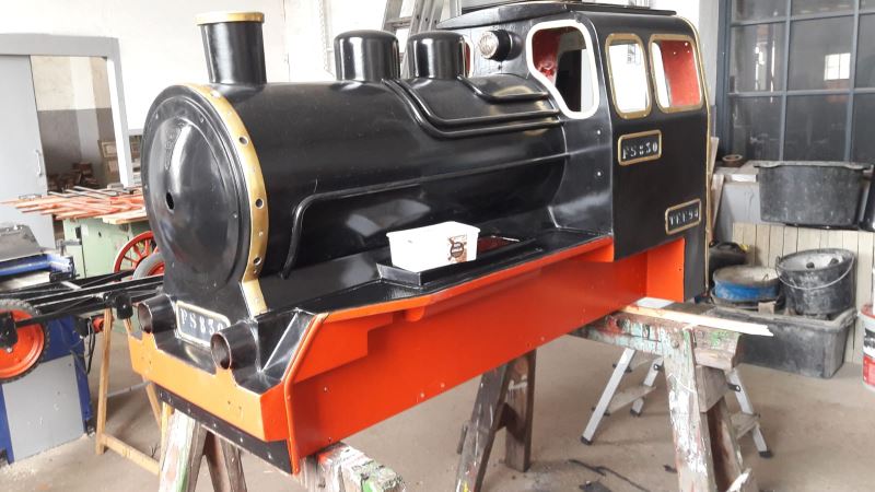 Auch die kleine Kinderlokomotive nähert sich der Fertigstellung. Sie freut sich schon über neue Farbe und ein neues Fahrwerk. So hoffen wir, dass unsere kleinen Besucher ab Saisonbeginn im April Spaß an ihr haben werden.