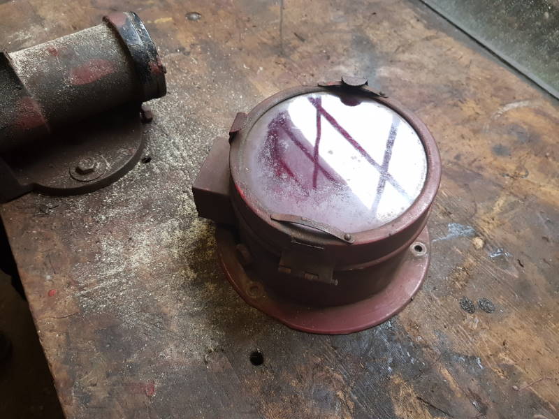 Für den Beiwagen 190 851 suchen wir noch eine Schlussleuchte, die an der Stirnseite des Wagens angebracht werden soll. Auf dem folgenden Foto sieht man eine der noch vorhandenen Leuchten. Vielleicht hat jemand von Ihnen, liebe Besucher und Eisenbahnliebhaber ja noch so eine Leuchte zuhause und möchte sie wieder ihrer ursprünglichen Verwendung zuführen. Über die Konditionen können wir gerne sprechen und bitte um Nachricht an den Vereinsvorstand. Vielen Dank!