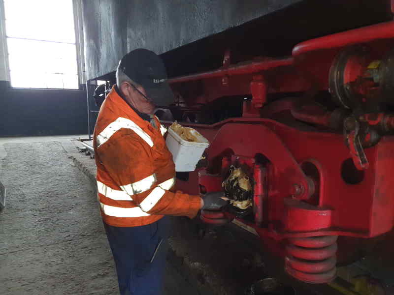 Am Tender der Dampflok 50 3570 wurden die Rollenlager der Tenderachsen mit neuem Fett versorgt.