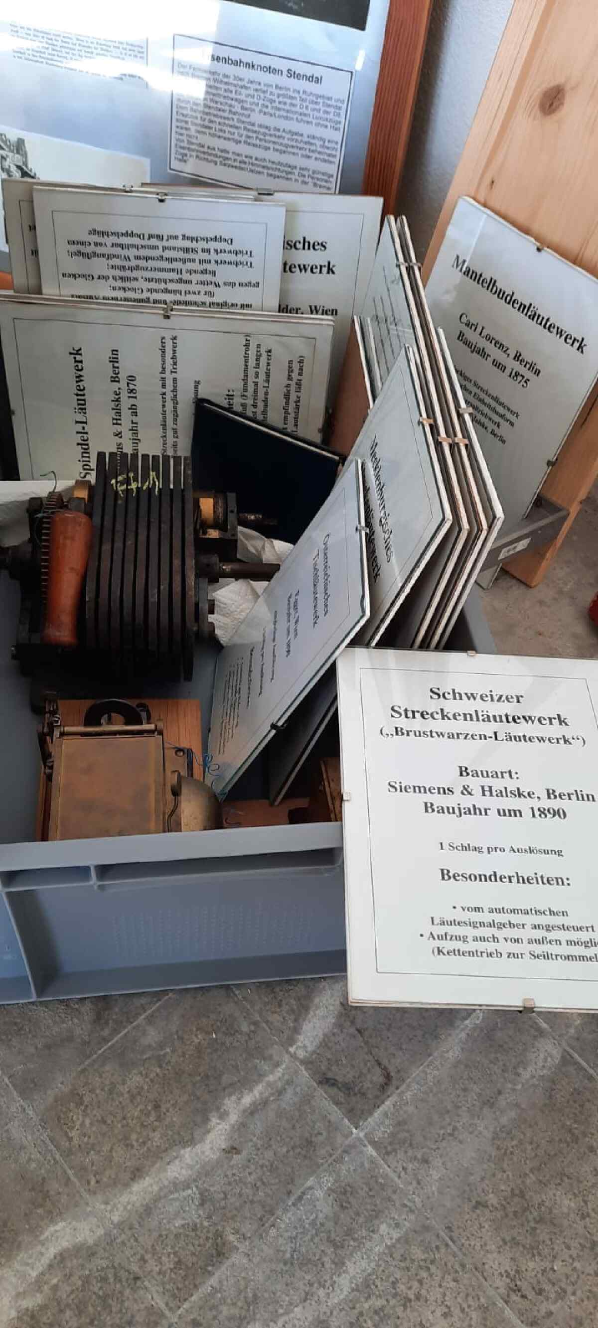Am Sonntag fand dann der bundesweite Tag des offenen Denkmals statt. Auch hieran haben wir uns beteiligt und konnten etlichen Besuchern über unsere Aktivitäten zum Erhalt unseres Denkmals berichten. Heute können wir auch über eine weitere kleine Sensation berichten. Zwar ist leider der bekannte Stendaler Fachbuchautor und Eisenbahnliebhaber Wolfgang List vor einiger Zeit verstorben. Wir konnten uns aber mit der Familie dahingehend verständigen, dass unser Museum die umfangreiche Sammlung von Läutewerken übernimmt und ausstellt. Dabei handelt es sich um diverse, teilweise telefonzellengroße Geräte, die vor der Digitalisierung der Eisenbahn der Meldung von ankommenden und abgehenden Zügen per Morsezeichen dienten. Wolfgang List hatte solche Anlagen aus etlichen Teilen Deutschlands vor der Verschrottung bewahrt und in seiner Privatsammlung funktionsfähig restauriert. Nun bekommen die Teile in Wittenberge ihren würdigen Platz. Wir danken den Angehörigen noch einmal sehr herzlich für ihre Bereitschaft, uns die Sammlung zu übergeben. Wir haben vor einigen Tagen mit der Aufstellung der großen Ausstellungsstücke in unserem Freigelände begonnen.